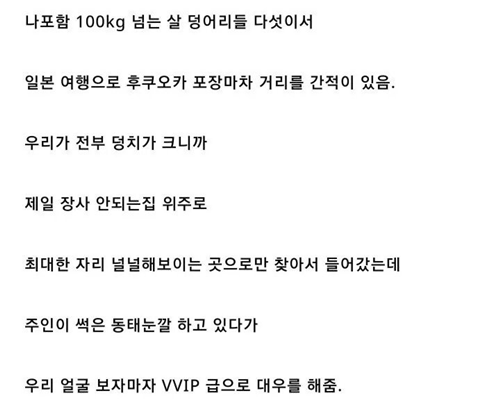 100kg 넘는 친구 5명이 장사 안되는 일본 식당만 들어간 후기