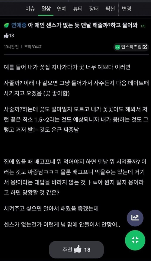 남친이 센스가 너무 없다는 여자