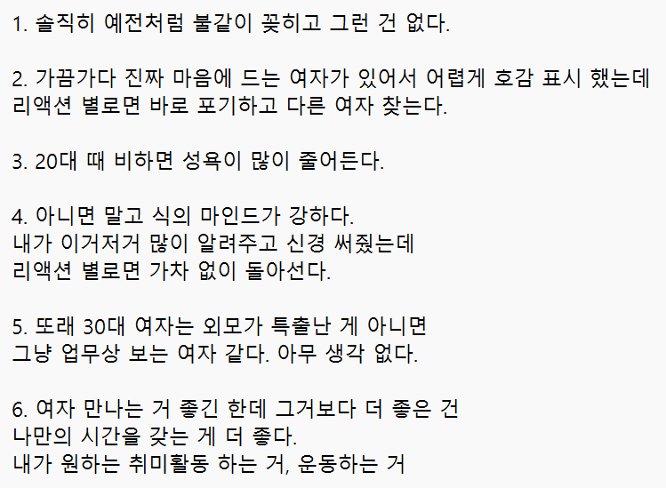 30대 남자가 느끼는 연애감정..
