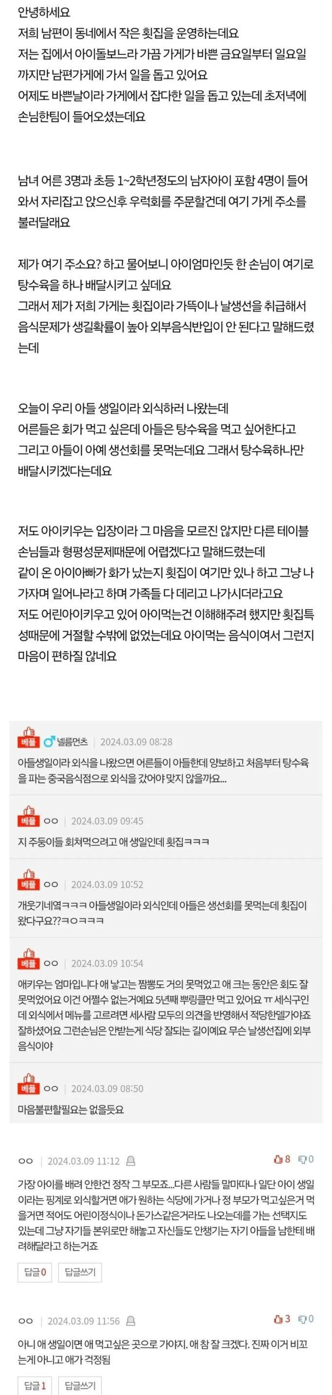 횟집에서 탕수육 배달시킨다길래 거절했더니..